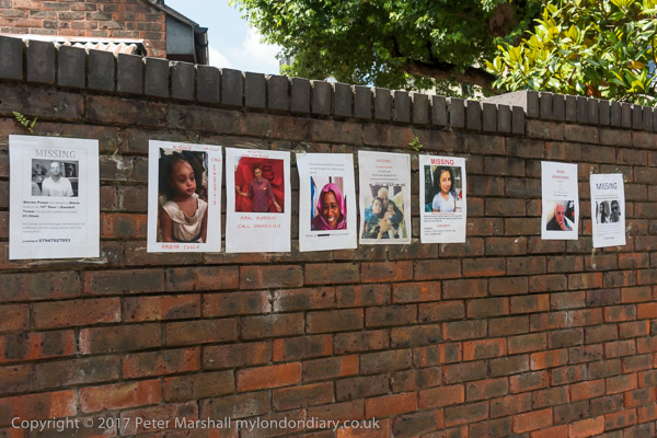 Even in the wealthy streets there are some posters of the missing