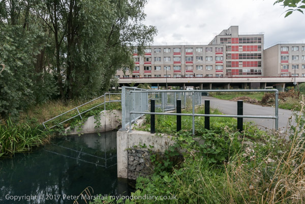 Moselle goes underground as it approaches Broadwater FarmBroadwater Farm Estate, known widely as simply 'The Farm', became notorious in the 1970s and 80s when poor maintenance and crime in poorly lit 'deck level' walkways made it into a sink estate after problems with damp, infestation and electrical faults led to half of its original residents moving out.