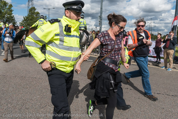 and officers carry away another woman who refused to move