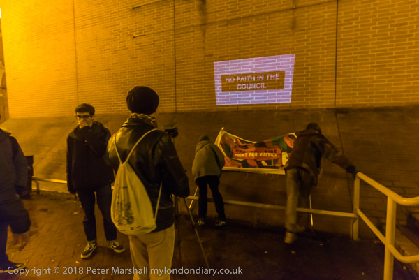 One says 'NO FAITH IN THE COUNCIL, but the projector isn't powerful