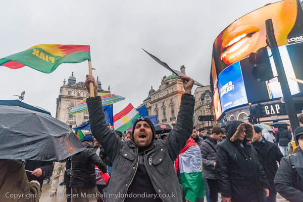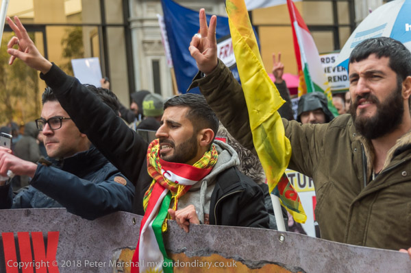 Many carried flags or wore them for the YPG and other Kurdish groups