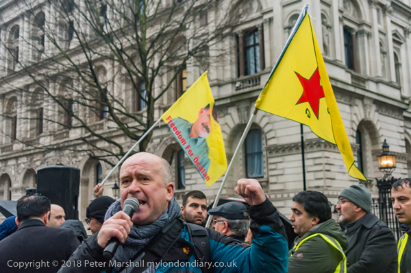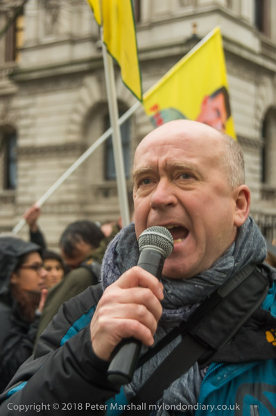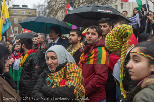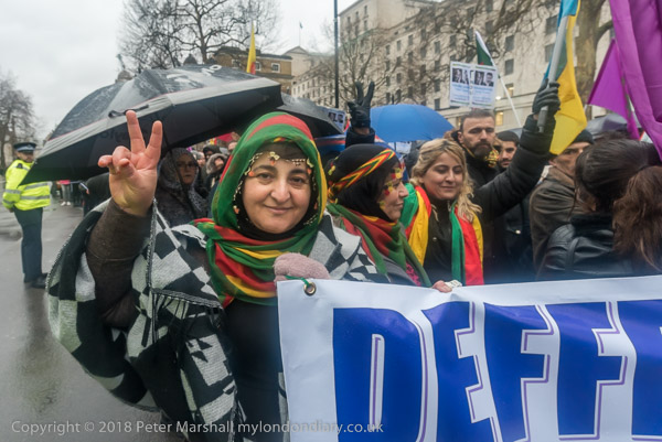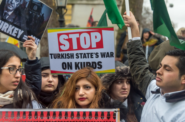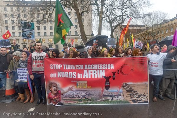 The march goes past Piccadilly Circus, where the giant Turkish Airlines