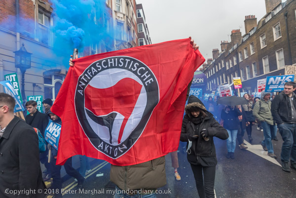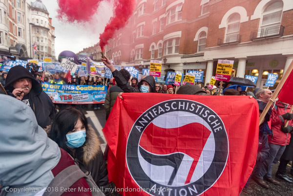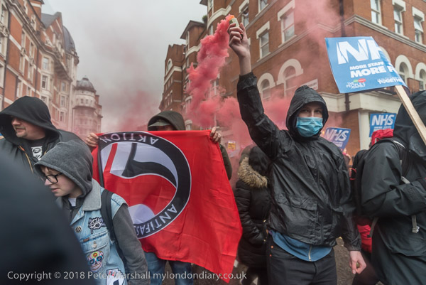 Anti-fascists set off a smoke flare