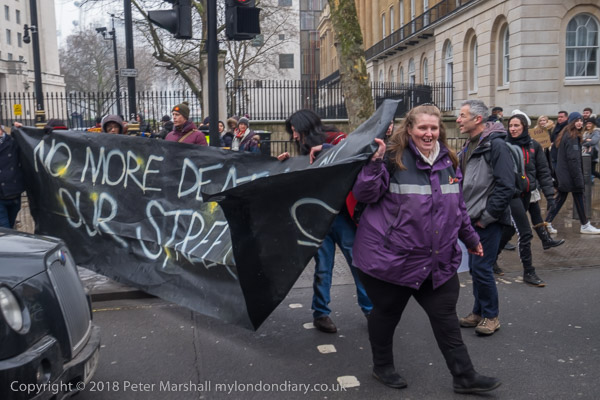Protesters go on to the street and block on carriageway of Whitehall