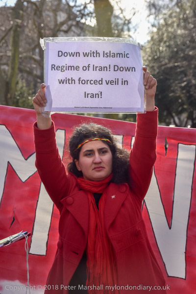 'Down with Islamic Regime of Iran! Down with forced Veil in Iran!'