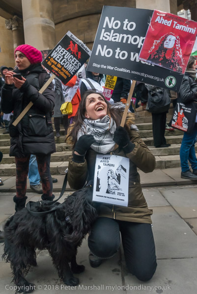 'No To Islamophobia' and 'Free Ahd Tamini', the Palestinian teenager