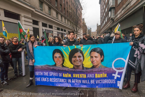Plan C's banner 'Solidarity with Afrin - Defend Woman's Revolution!,