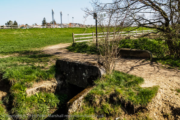 following the Bourne ditch and crossing it on this bridge