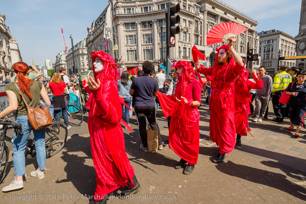 The red robed group were walking around the outside of Oxford Circus