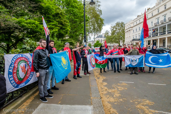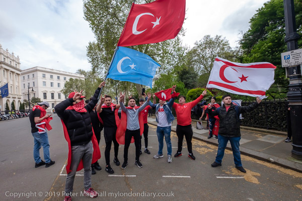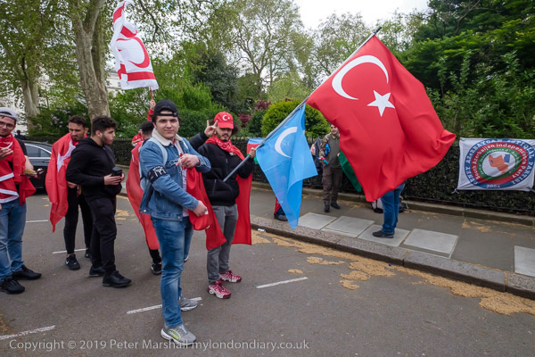 beyond them were another group of protesters, with various flags,