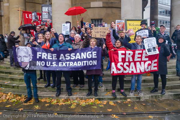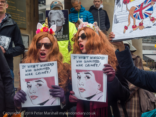 including two 'unicorns' holding posters 'It Wasn't Wikileaks who