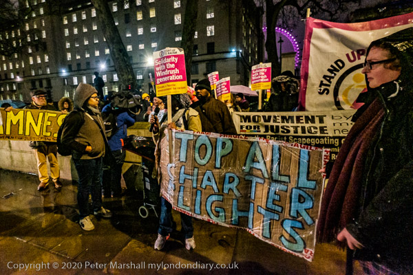 The march took place on St Valentines Day and a number of placards and posters reflected the date. The began their march going past the Dept of Education with a brief stop to make their feelings heard before going on to protest outside the Home Office against their racist migration policies.
