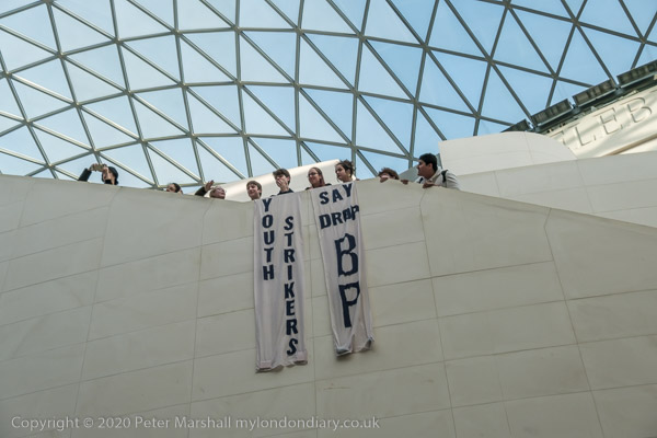 Youth Climate Strike drop two banners 'Yout Strikers Say Dump BP'