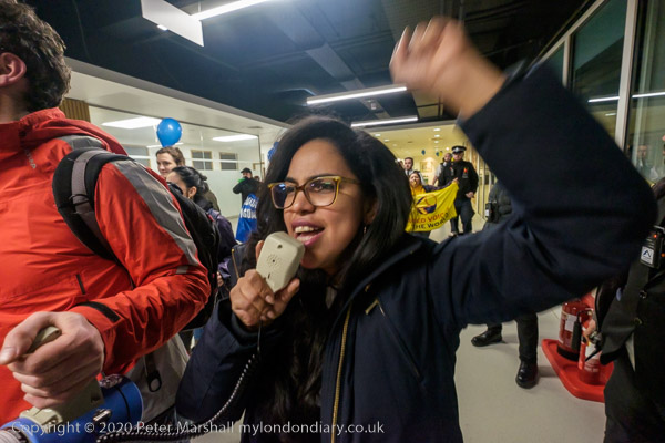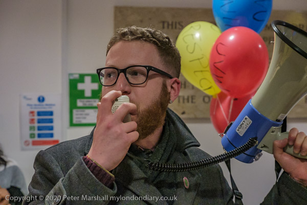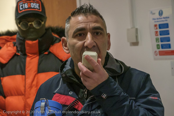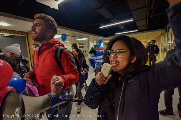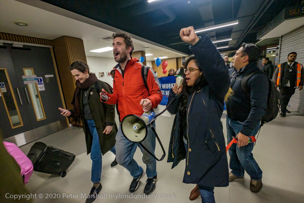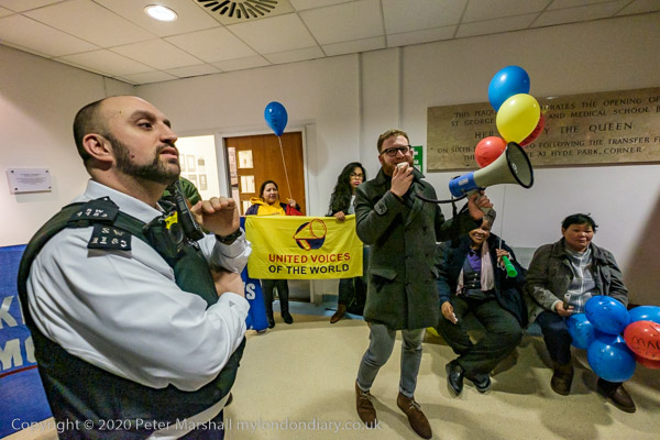 and from the RMT, while a police officer tells the protesters this