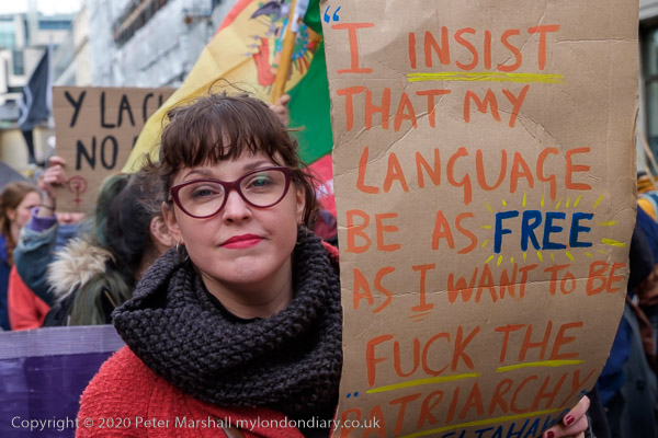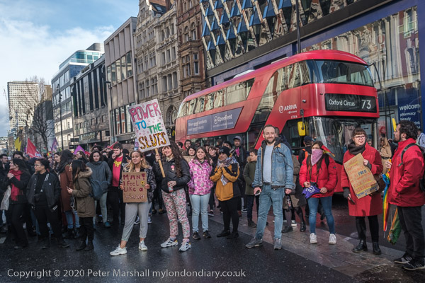 'Power to the Sluts' and a bus is held up by the rally