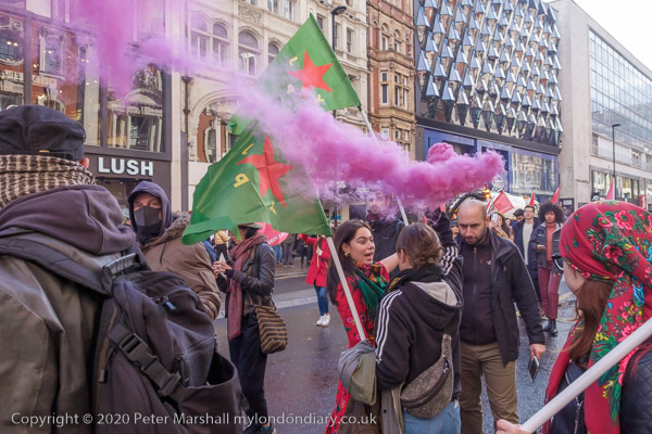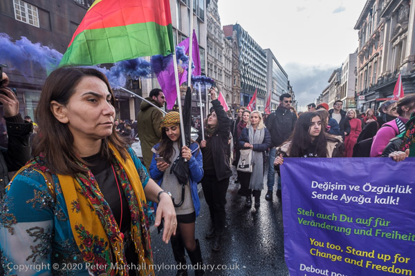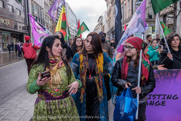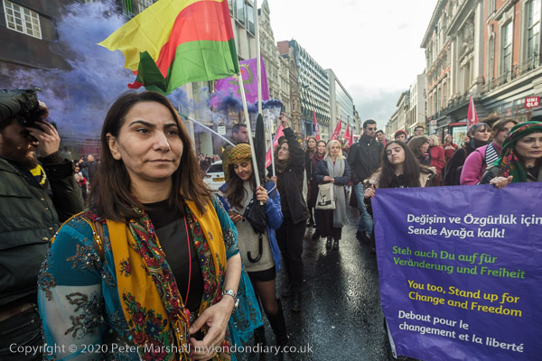 Women hold YPJ flags - for the Kurdish women's defence units