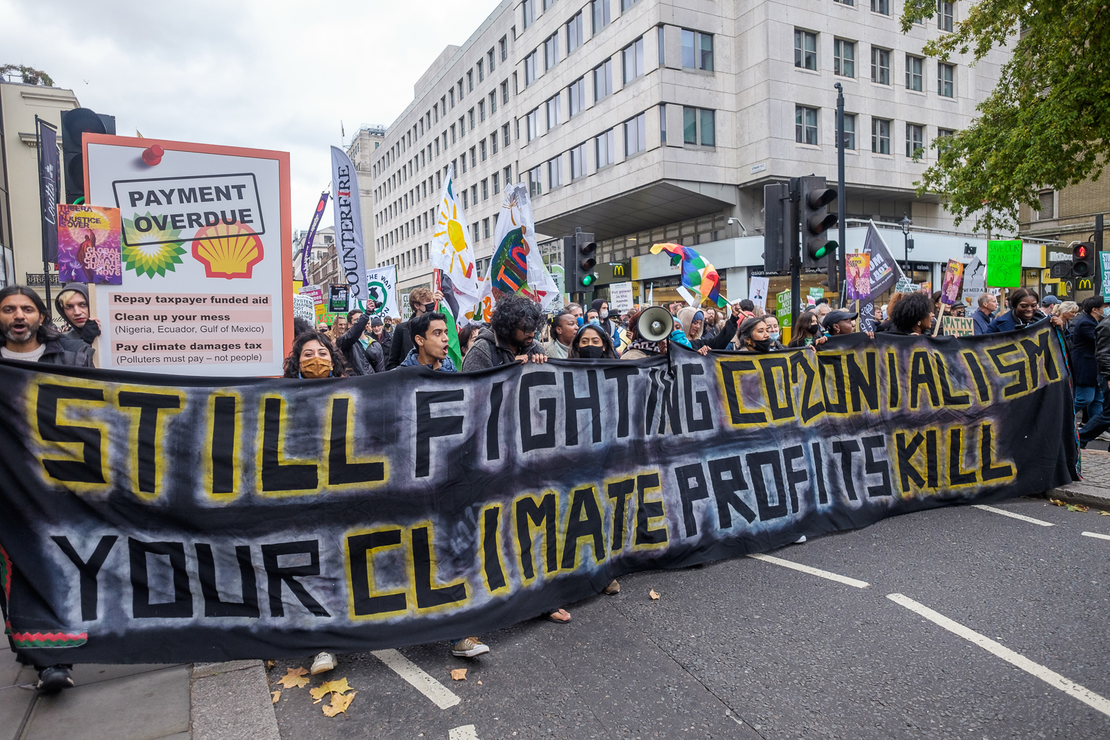 London, protest, march, rally, Bank, Trafalgar Square, COP26, Global Climate Summit, climate crisis, climate catastrophe, global warming, carbon emissions, species extinction, extinction, greenwashing, broken promises, world leaders, corporations, collective action, indigenous movements, frontline communities, trade unions, racial justice groups, youth strikers, landworkers, peasants, NGOs, grassroots community campaigns, feminist movements, faith groups, climate justice now,